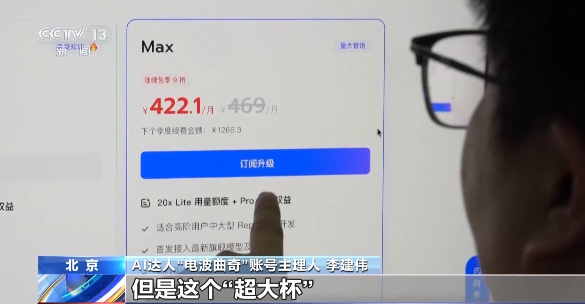 AI达人“电波曲奇”账号主理人 李建伟:相当于我们去运营商买流量包,现在它的“中杯”和“小杯”已经完全售罄了,只能量大管饱的“超大杯”,但是“超大杯”已经到400多块钱一个月了。
